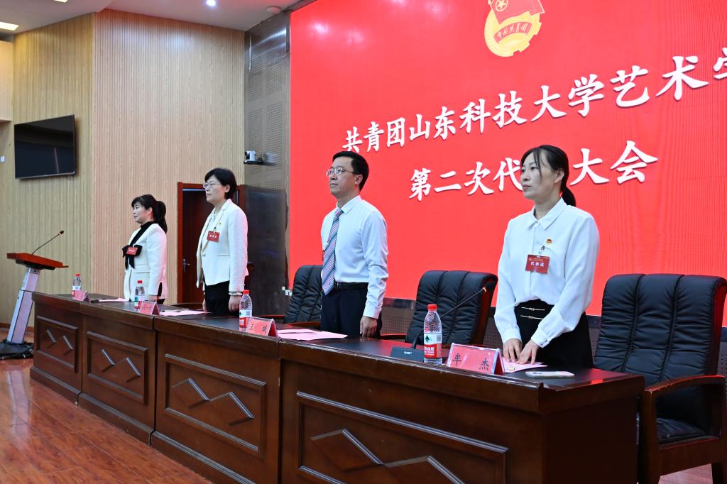 伴随着慷慨激昂的《光荣啊,中国共青团》,共青团山东科技大学艺术学院第二次代表大会圆满落下帷幕。(通信员:史翘楚 辛一鸣 李绍广 摄影:史翘楚 李绍广 李天诚)
