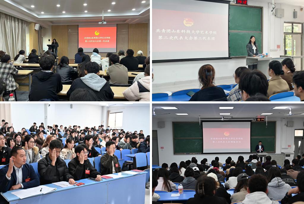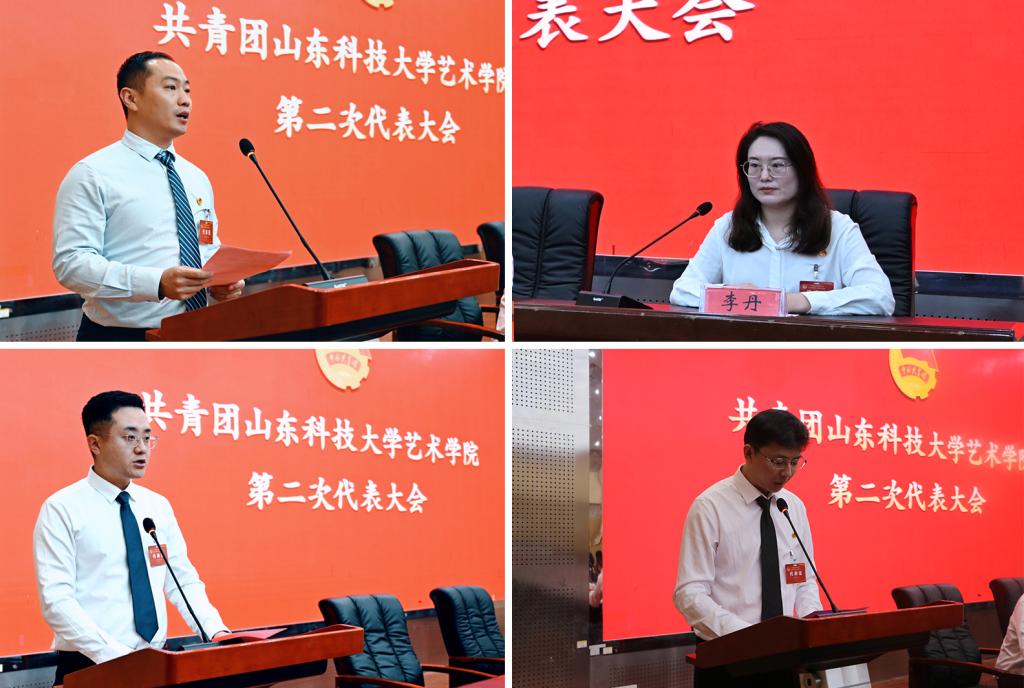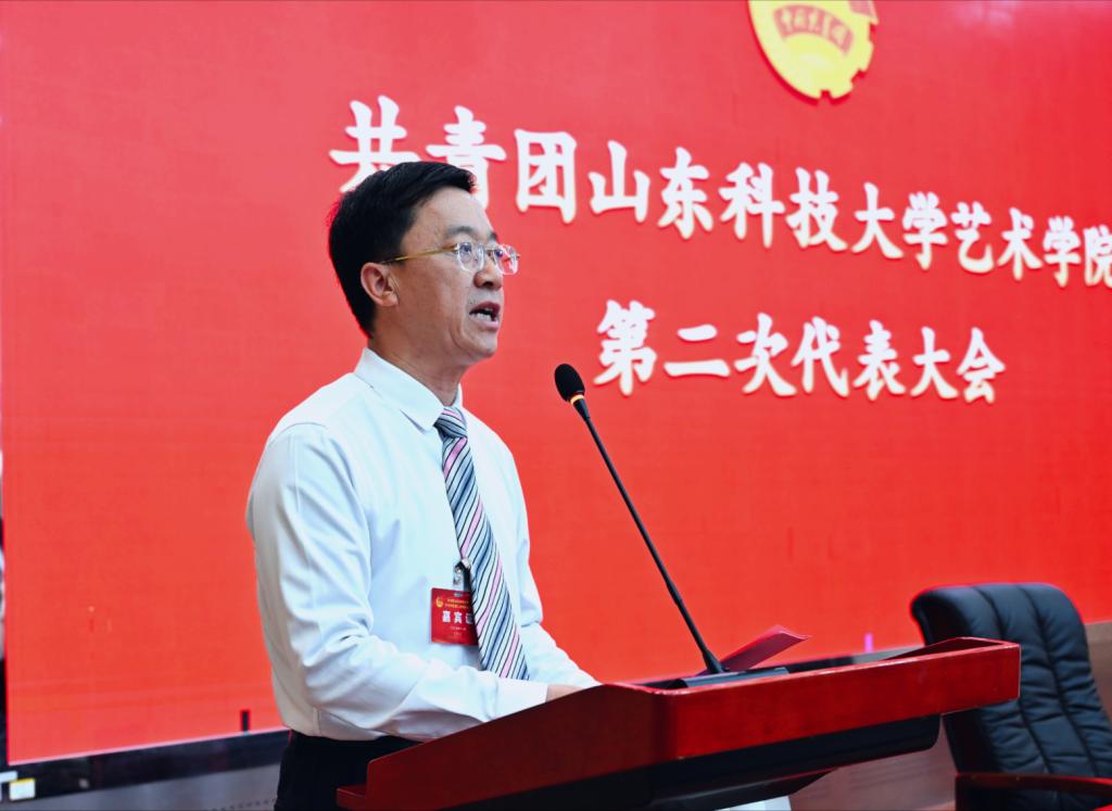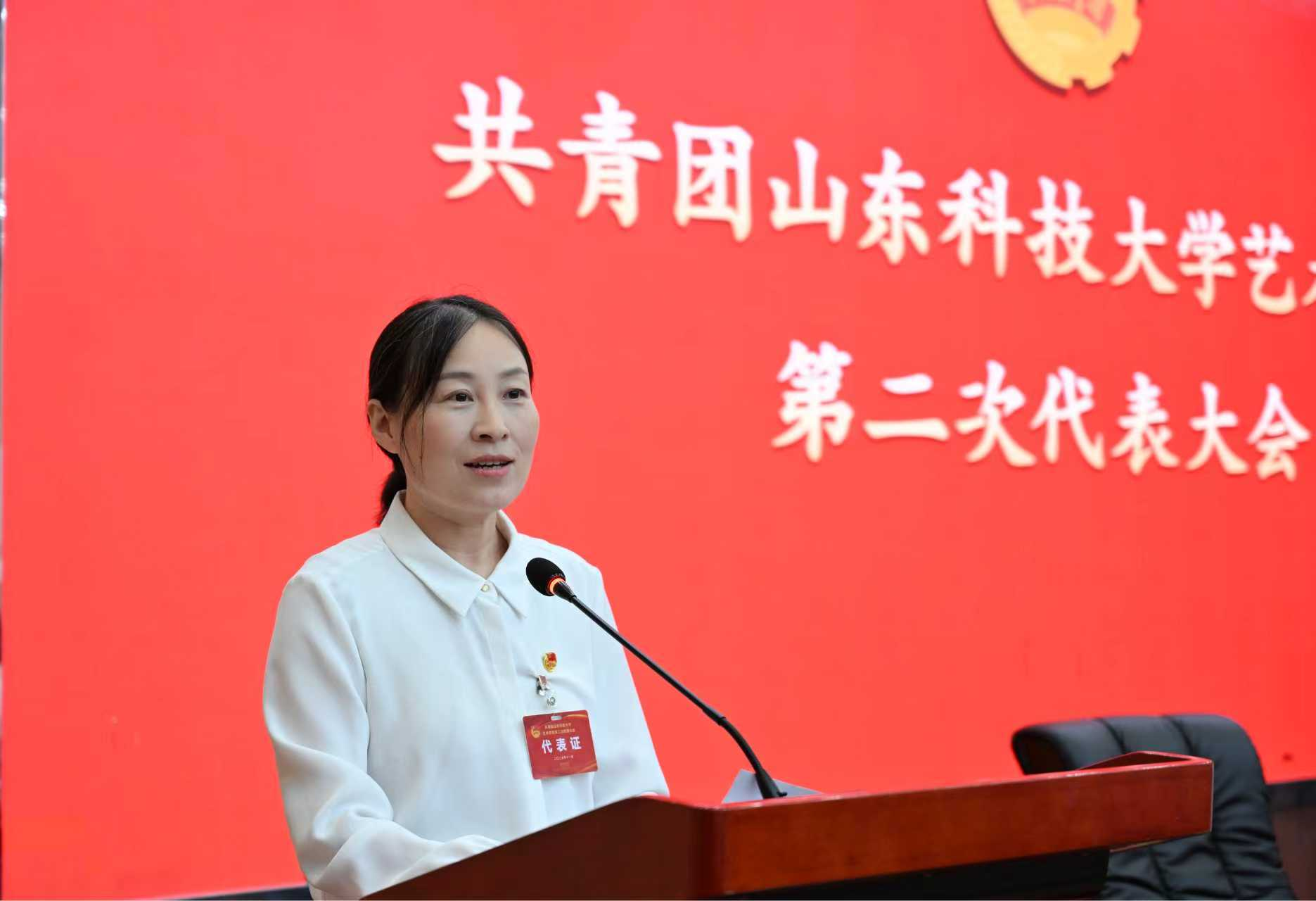 牟杰代表共青团山东科技大学艺术学院第一届委员会作了题为《以艺铸魂育新人 青春建功新时代——为建设工科主导、特色鲜明的高水平应用研究型大学贡献艺术青年力量》的工作报告。报告全面回顾了近几年学院共青团工作历程与成效、深入剖析现存困难与挑战、规划了未来努力方向。学院团委将紧扣“服务学校学院发展、服务青年成长成才”核心,实施“信仰铸魂工程”构建精准化引领新格局、实施“创新赋能工程”打造高质量科创新高地、实施“志愿提质工程”塑造专业化服务新品牌、实施“组织强基工程”夯实全方位服务新根基。