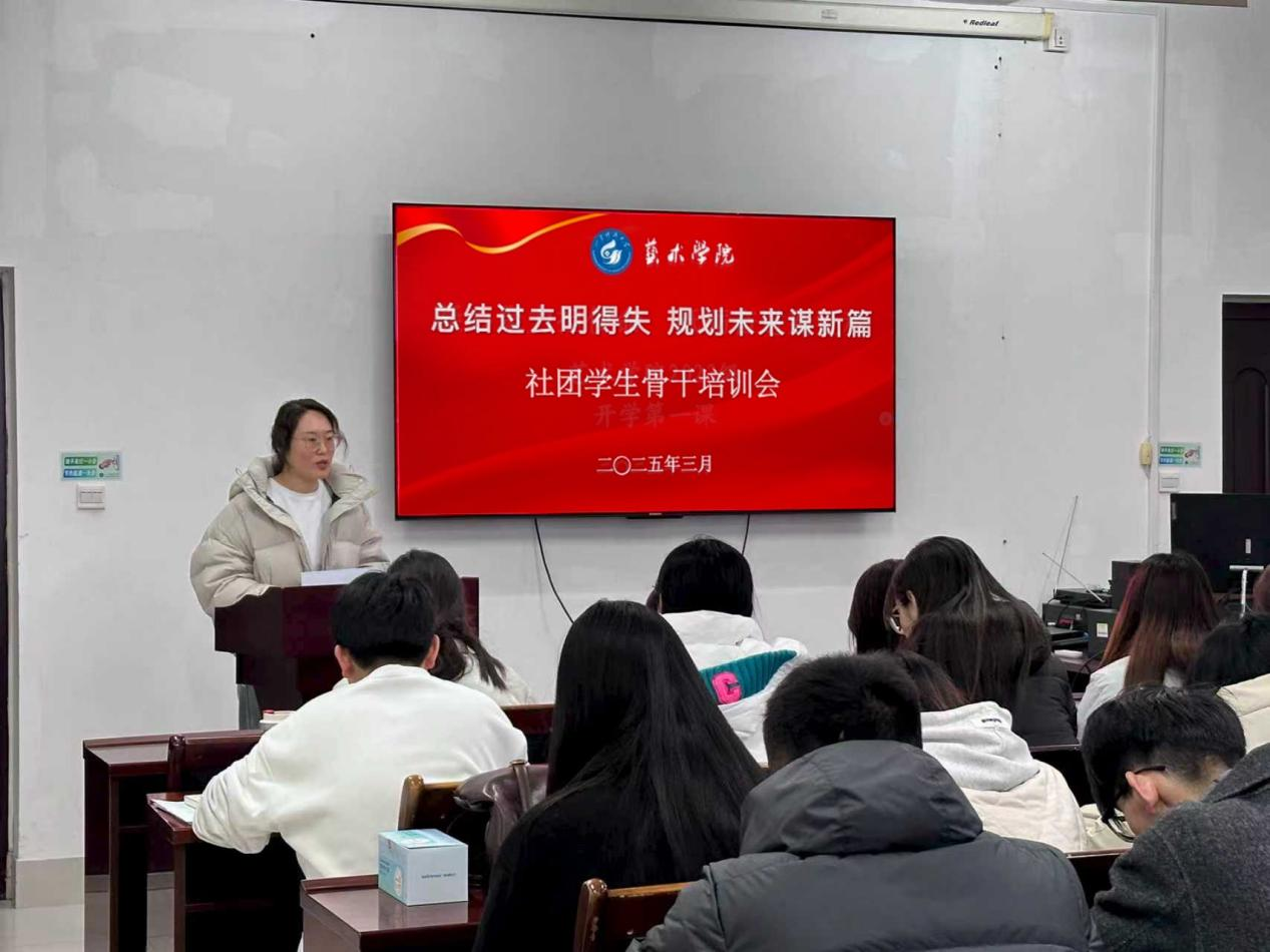 新学期伊始,为进一步提升社团工作水平,激发学生组织活力,3月6日,艺术学院于J9-425举办“总结过去明得失规划未来谋新篇”为主题的社团学生骨干培训会,社团各部门主要负责人参会,社团部负责老师李丹主持会议。
