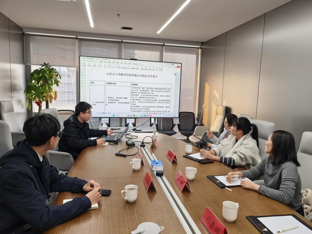 为深化校企合作,拓宽毕业生就业渠道,近日,我院党委副书记卫雪带队,与辅导员牟杰、李丹、门昌玮一行前往山东云小华数字科技有限公司进行“访企拓岗”专项走访与深度交流。