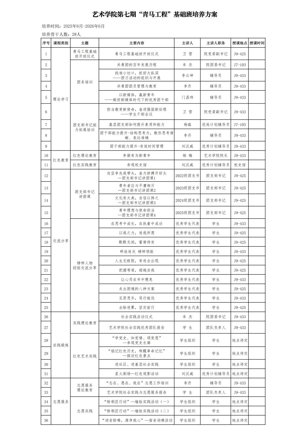 2.结合艺术专业特点,提升学员的组织协调、沟通表达、实践创新及艺术创作服务社会的能力,打造兼具政治素养与专业本领的青年骨干队伍。