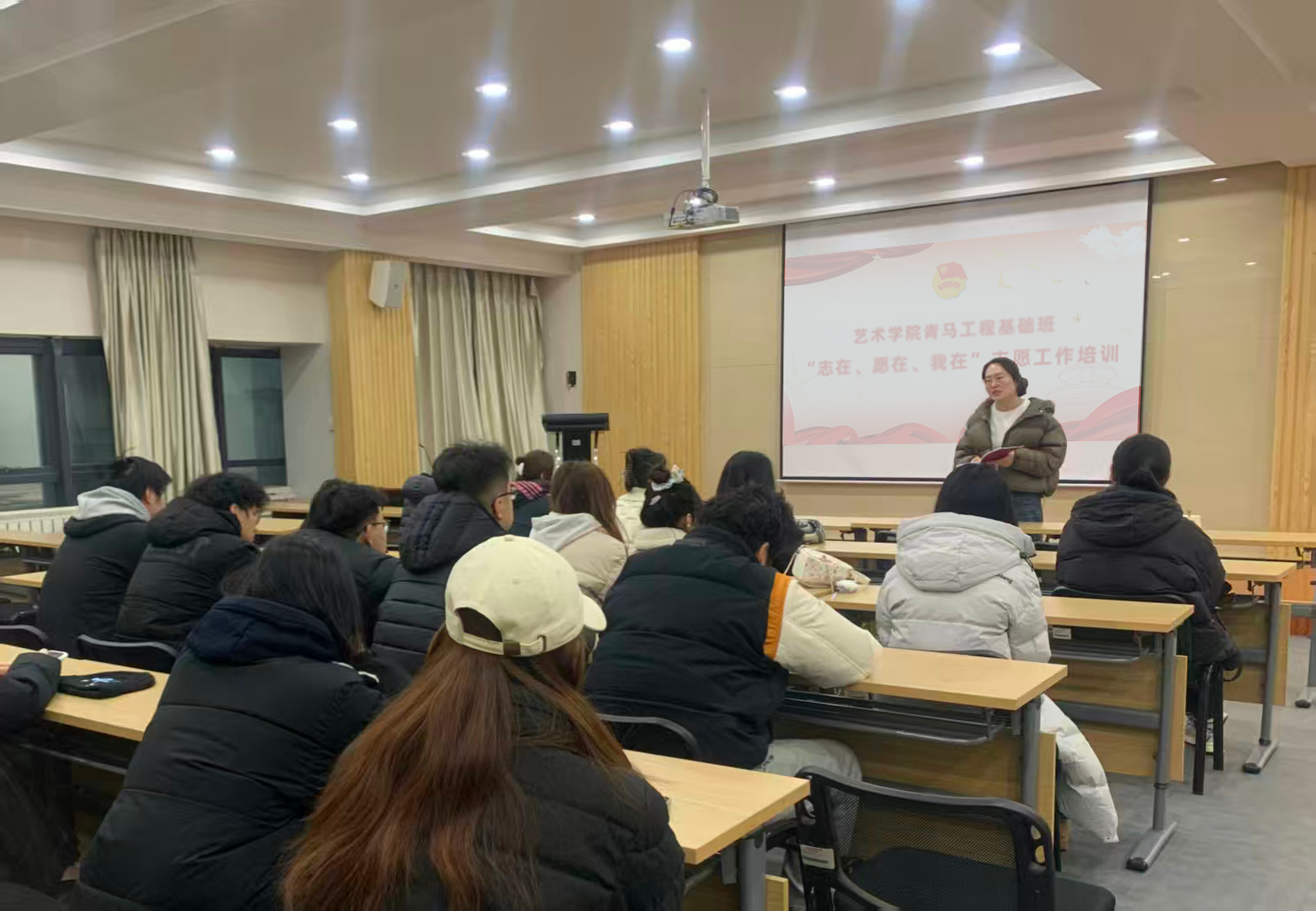 活动伊始,李丹结合新时代志愿服务发展趋势,阐述了开展本次志愿工作培训的重要意义,强调志愿服务是青马学员锤炼品格、增长才干的重要实践平台,也是青年践行社会责任的生动体现。随后围绕“志在、愿在、我在”三个角度,为学员们展开全面细致的讲解。