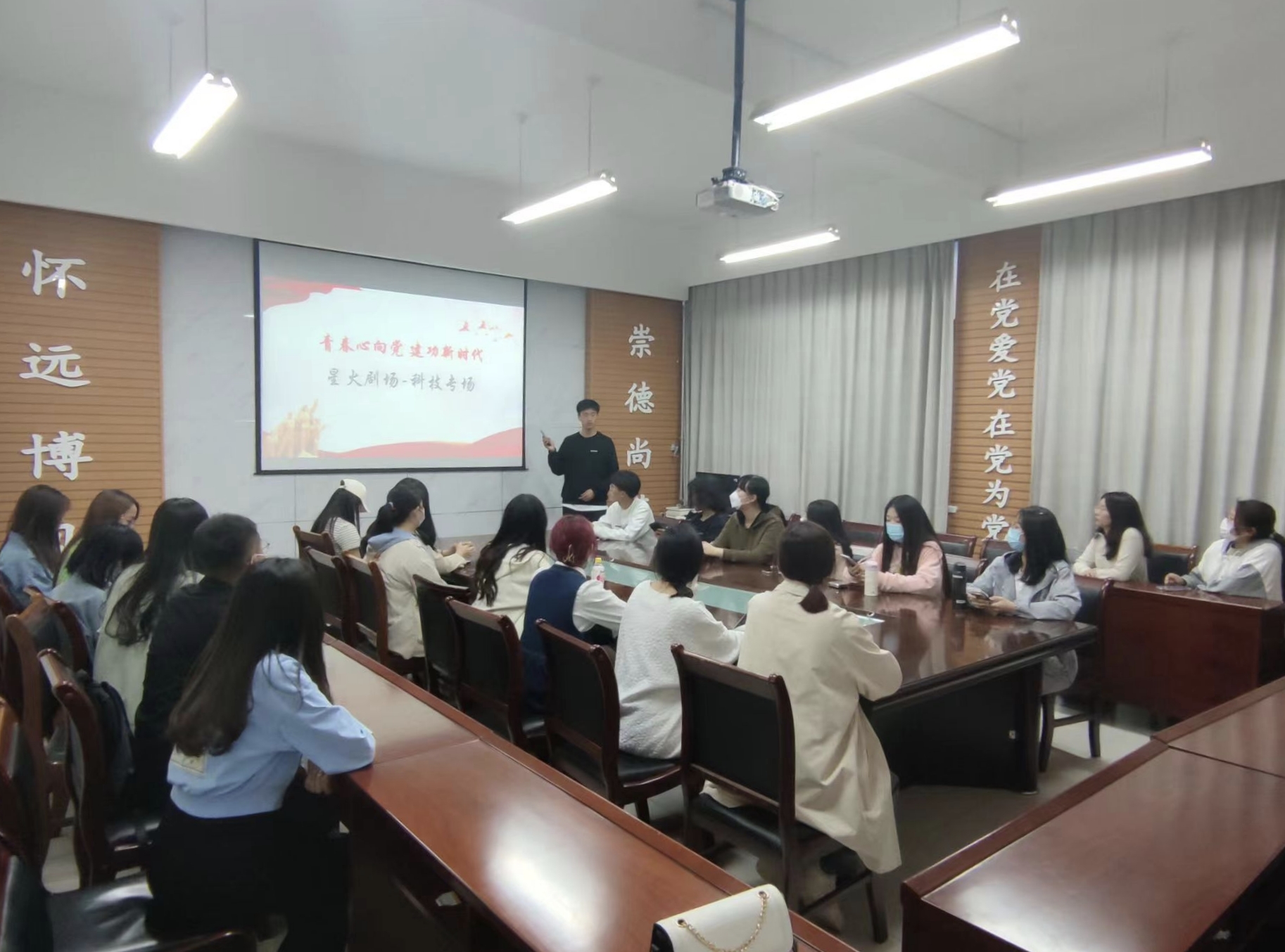 为深入推进青年马克思主义者培养工程,引导青马学员厚植科技创新意识,10月28日,我院青马工程系列活动之“星火剧场”观影活动在J9-443顺利举办。本次活动以“科技创新”为核心主题,由学院优选计划辅导员刘汉威主持,青马工程基础班学员参与此次活动。