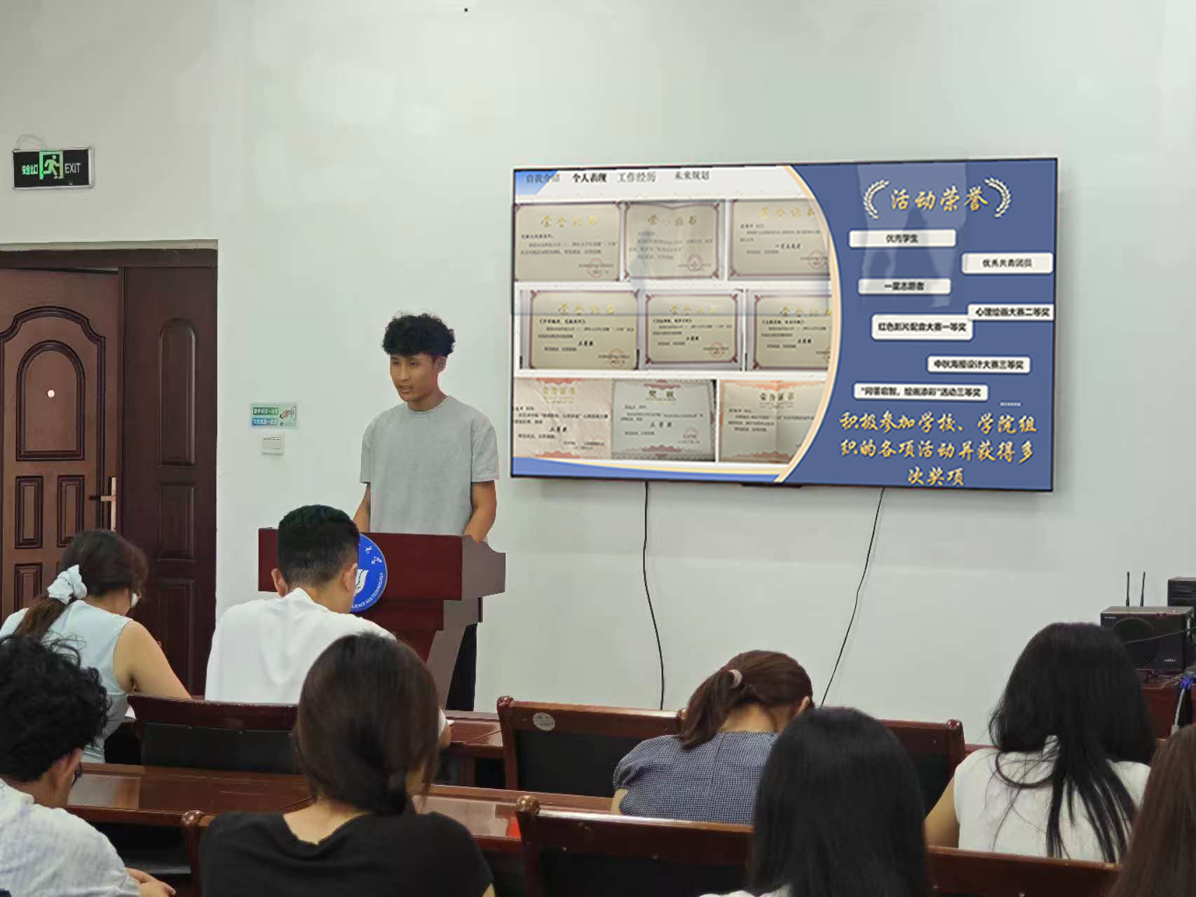 苏俊中结合自身多次参与社会实践与志愿服务的经历,向在场同学展开了生动细致的分享。用详实的案例讲述了在志愿服务中的所见所闻所感。在谈到乡村美育支教经历时,他分享了自己如何发挥产品设计专业特长,为乡村儿童开展趣味美术课堂,帮助孩子们用画笔勾勒梦想的故事。在互动交流环节,在场同学积极提问,围绕“如何寻找契合专业的志愿服务项目”、“初次参与公益活动需要注意什么”、“坚持志愿服务的动力来源”等问题与苏同学展开深入交流。