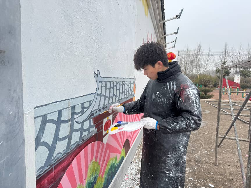 为将艺术创作扎根乡土大地,以专业力量助力乡村文化建设,这个寒假,山东科技大学艺术学院艺绘文化服务队走进山东省日照市岚山区碑廓镇,开展以“艺绘乡村,美润乡风”为主题的墙绘社会实践活动。队员们用创意与色彩装点乡村街巷,用艺术与热情传递青年担当,让美丽乡村在画笔之下焕发全新生机。