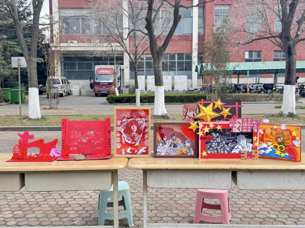 活动共征集作品十余件,同学们以2—3人组队参与创作,围绕雷锋精神内核进行多元艺术表达。作品以立体画为载体,融合剪纸、纸艺、综合材料等手法,生动展现雷锋助人为乐、爱岗敬业的形象,将“为人民服务”“甘做螺丝钉”等精神内涵融入创作之中。其中盛一平、陈凯林、黄资烨同学的立体剪纸作品以中国红为主色调,工艺精湛、层次分明,兼具传统艺术魅力与时代价值,获评优秀作品。