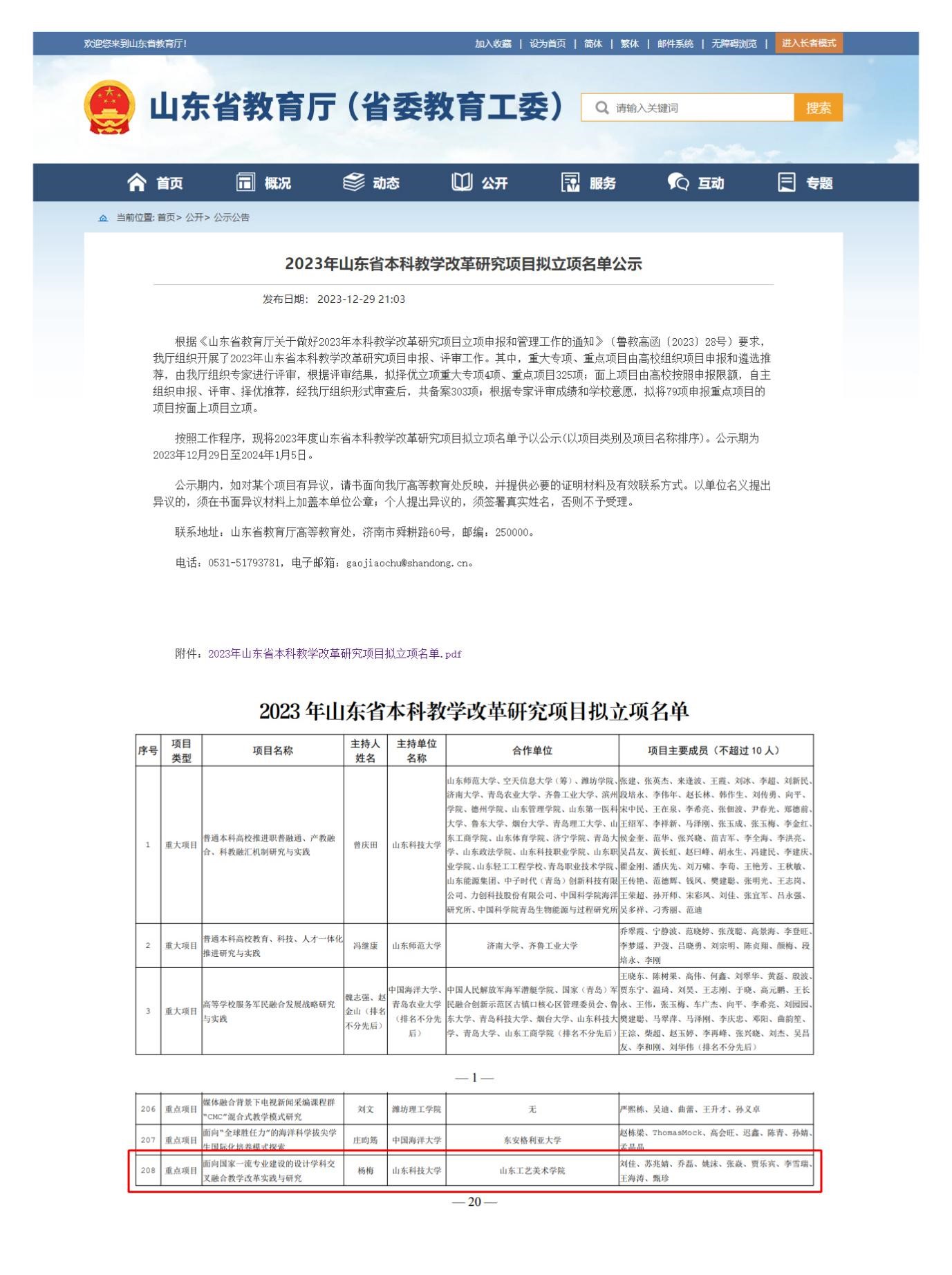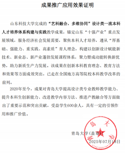山东省研究生教育质量提升计划项目《MFA<设计实践>课程教学案例库建设》