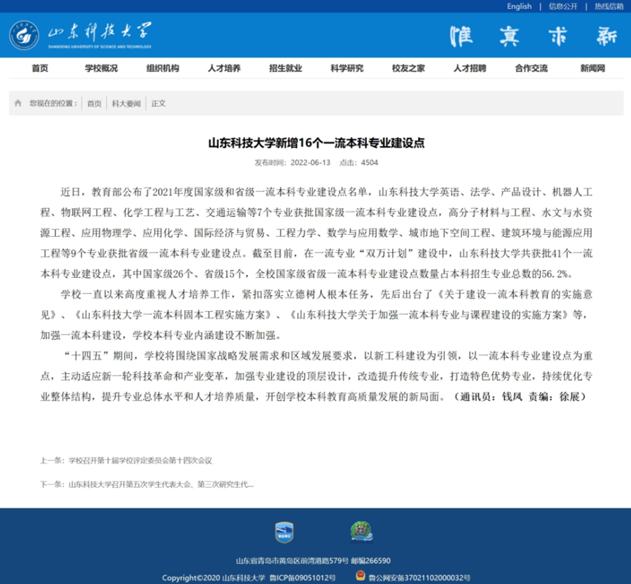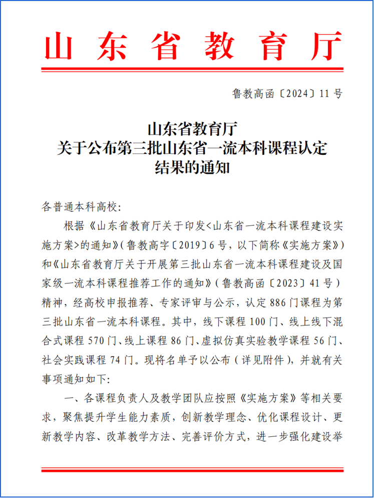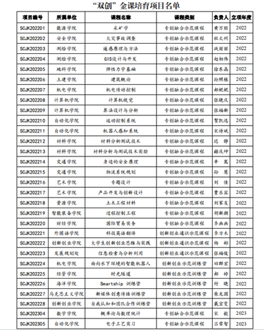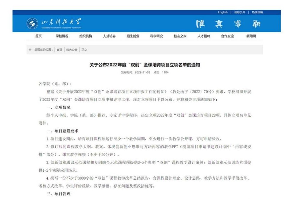 山东科技大学“双创”金课培育项目(专创融合示范课程)