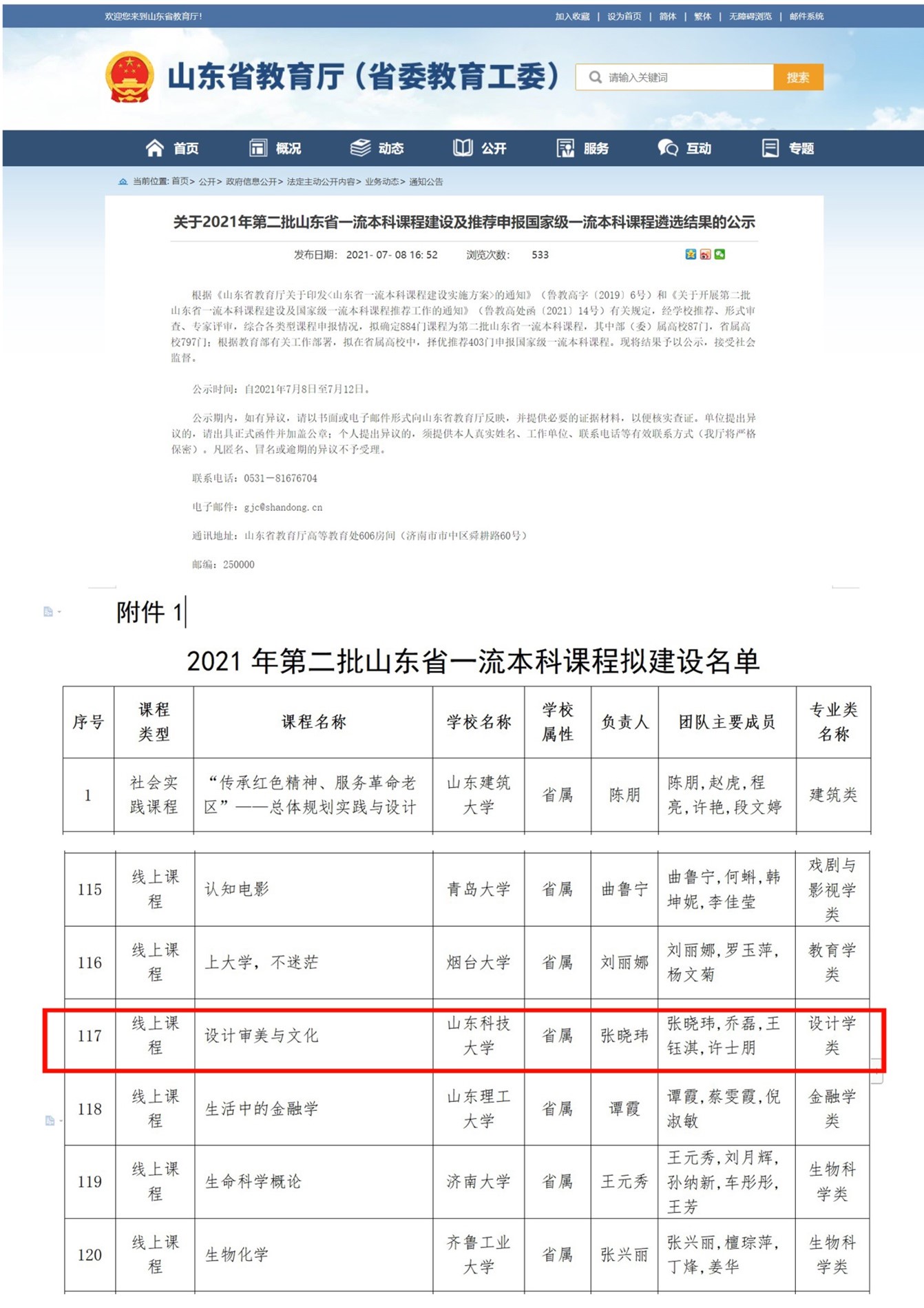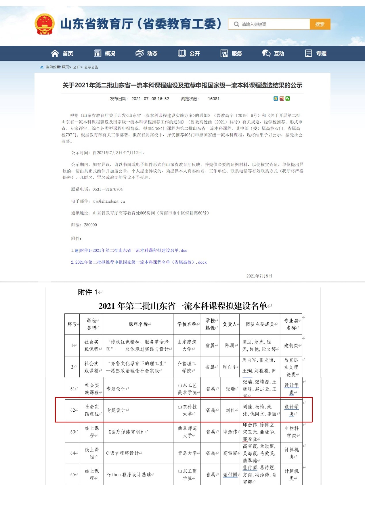 山东省一流本科课程(社会实践课程)《设计工作坊》