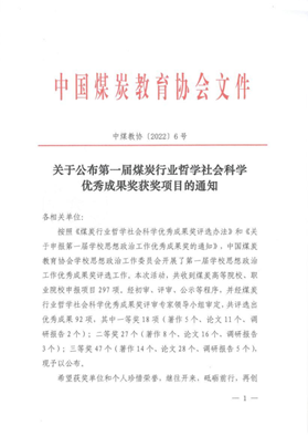 第一届煤炭行业哲学社会科学优秀成果奖三等奖(著作类)