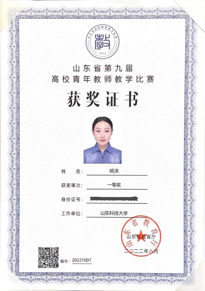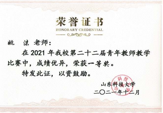 山东科技大学第二十二届青年教师教学比赛一等奖