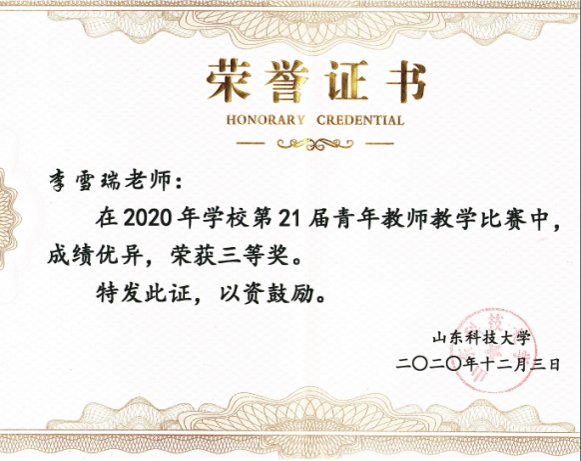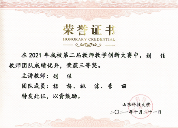 山东科技大学第二十一届青年教师教学比赛三等奖