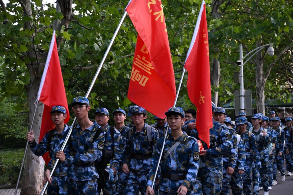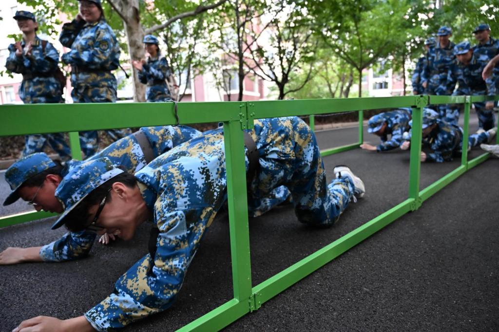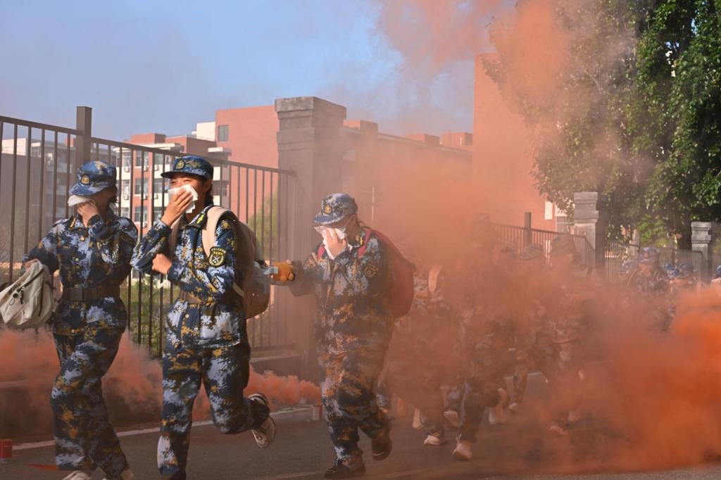 下午2点20分,身穿迷彩服的艺术学子们在操场整齐列队,个个英姿飒爽。随着教官的一声令下,拉练队伍迈着坚定的步伐出发。此次拉练全程十公里,融入了多项模拟实战环节,包括“烟雾袭击”、“防御空袭”、“穿越铁丝网”等突发场景模拟。这些模拟实战训练不仅考验了新生们的身体素质,更培养了他们在压力下的反应能力、应变能力和团结意识。拉练途中,同学们咬牙坚持,一步一个脚印地向前迈进,眼神中透露出顽强的意志。下午6点,队伍返回风雨操场,教官第一时间清点人数,确保所有人员到齐。虽然辛苦,但每个人的脸上都透着胜利后的自豪和喜悦的笑容。