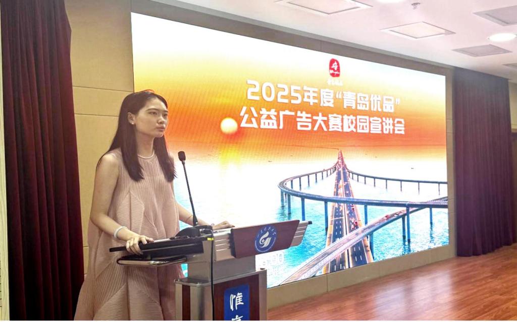 2025年9月9日下午,山东科技大学第三十八期美育大讲堂暨“青岛优品”公益广告大赛校园宣讲会在图书信息中心尚学讲堂圆满举行。本次活动旨在深入贯彻落实党的二十大及二十届二中、三中全会精神,进一步发挥公益广告在传播社会主义核心价值观、推动城市文明建设中的积极作用,扩大“青岛优品”品牌影响力。