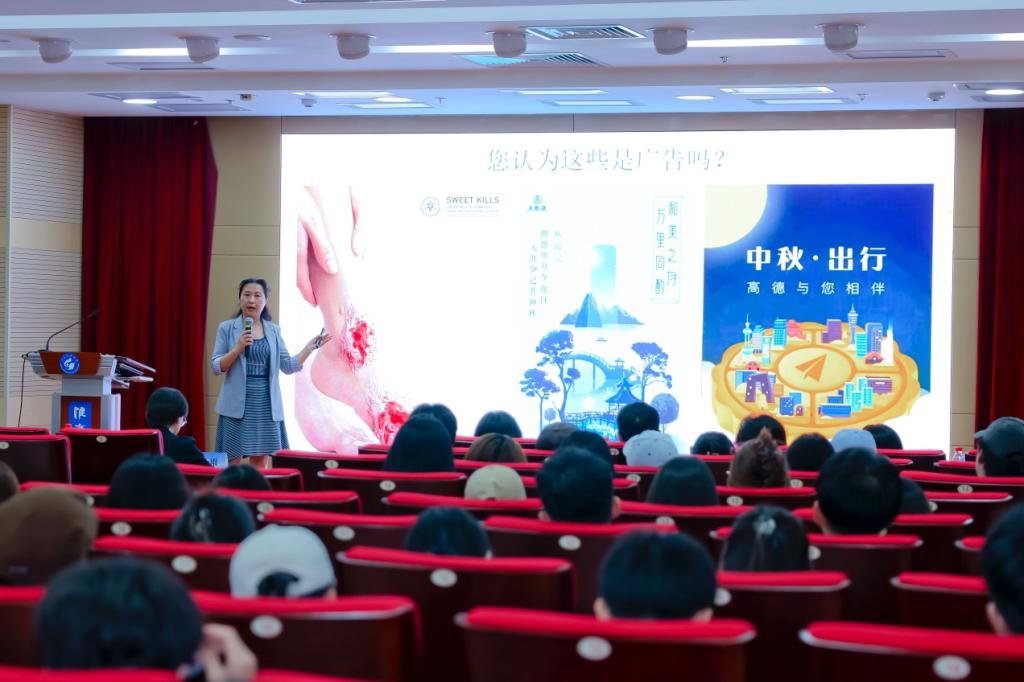 活动伊始,耿志宏副教授以“您认为这些是广告吗?”的互动提问开场,迅速点燃了现场气氛。她从广告的起源与发展历程切入,清晰界定了广告的概念与范畴,指出“广告是可识别的广告主付费,通过媒介传递信息以影响消费者态度并诱发行动的商业活动”,并系统介绍了广告创意与策划的分类及多元形式,为同学们构建了完整的知识框架。
