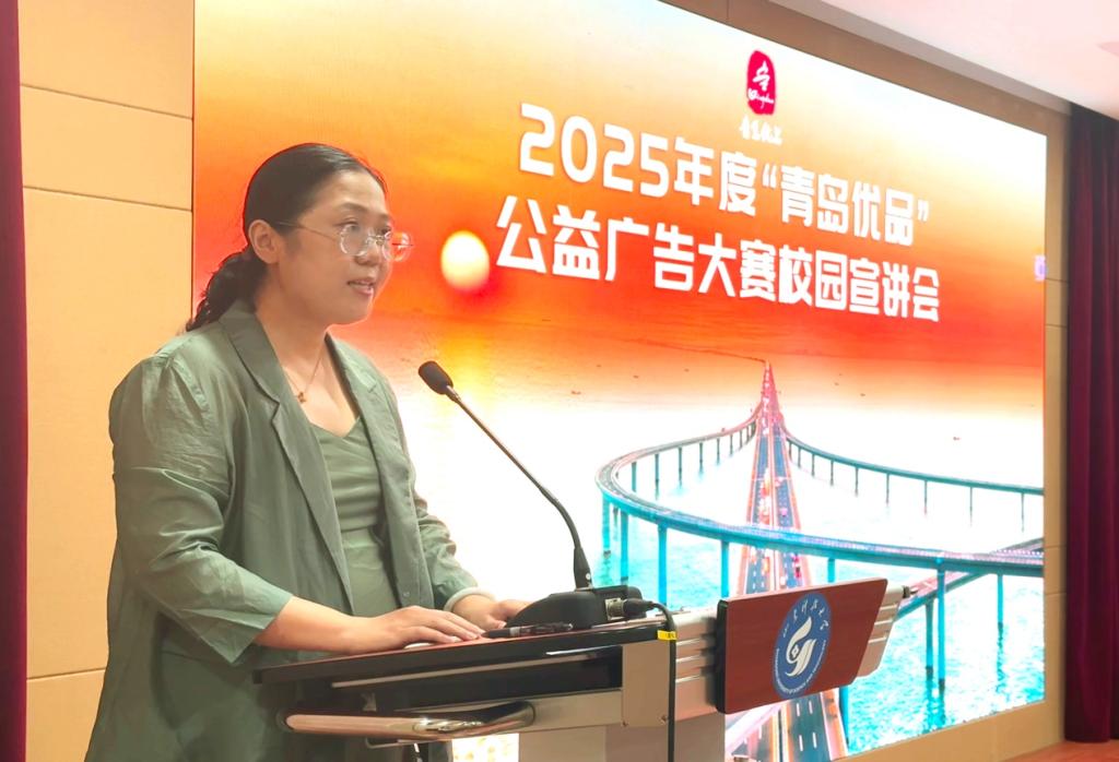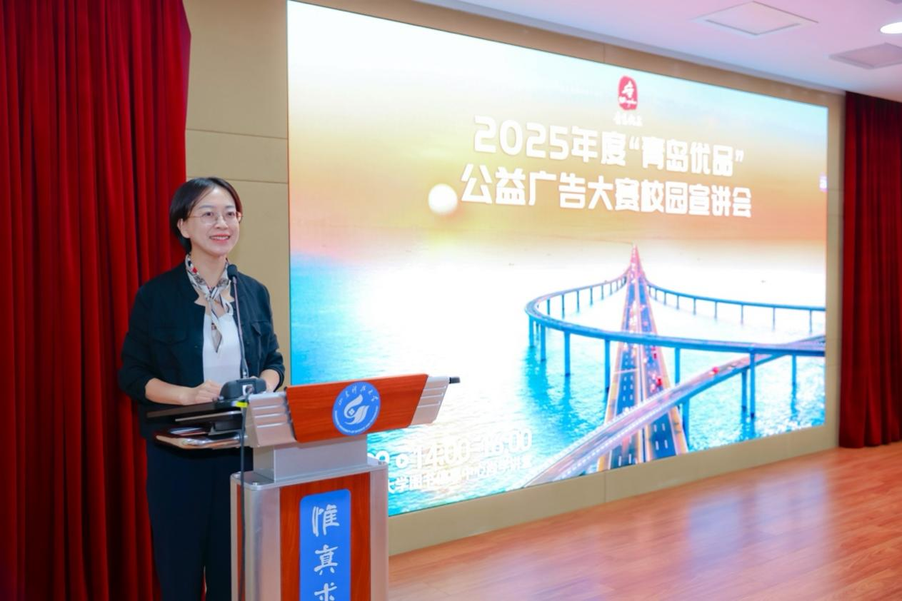 此外,青岛市市场监管局丛冬雨处长与市广告协会孙悦秘书长详细介绍了“青岛优品”公益广告大赛的参赛流程、评审标准及注意事项,并通过对历届获奖作品的解析,为同学们提供了宝贵的创作指导。